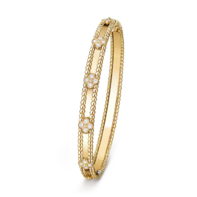Perlée sweet clovers手镯,中号款式, 18K黄金, 钻石:  40颗,  0.68 克拉, Front, Jewelry Bracelet_梵克雅宝_Van Cleef & Arpels